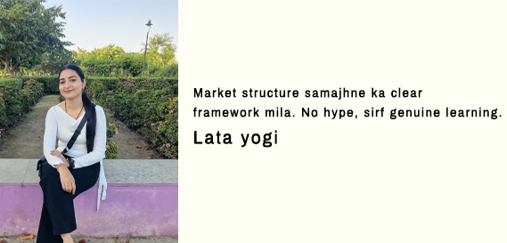 हम students को market को institutional angle से समझने में मदद करते हैं — indicators पर निर्भर रहने के बजाय deeper market logic सीखते हैं।